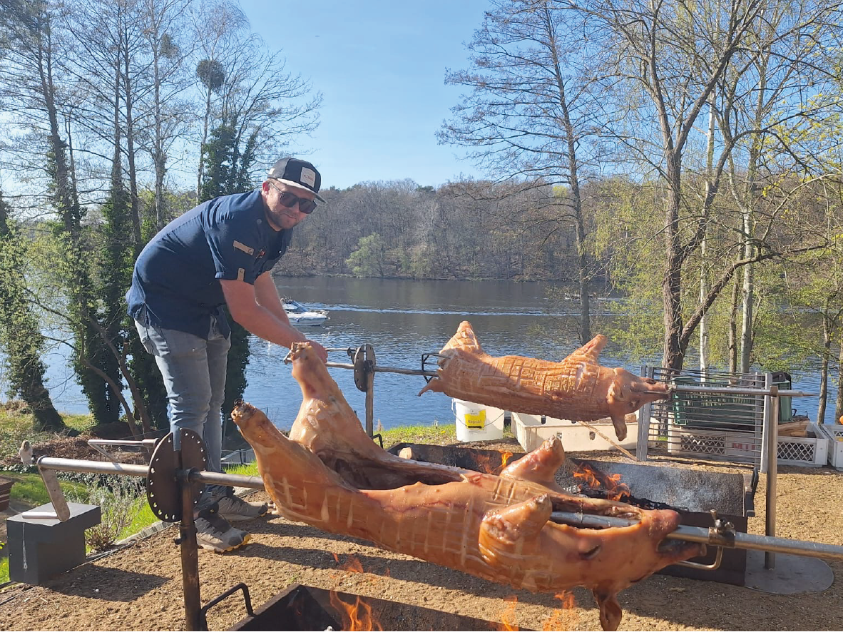 Unser Schwein am Spieß ist nicht nur lecker, sondern auch ebenso zart, saftig und kross wie ein Spanferkel wird oft zum Mittelpunkt der Party. Darüber hinaus haben wir auch Pute, Lamm und Wild am Spieß im Angebot.