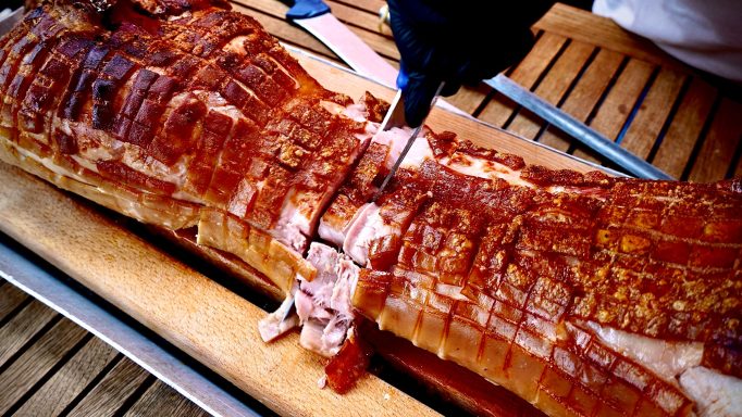 Bei uns werden nur Tiere aus regionaler Haltung und in speziellen Garverfahren verarbeitet. So werden unsere Spanferkel stets sehr zart, saftig und kross. Das gebackene Spanferkel kommt immer ohne Knochen auf den Tisch.